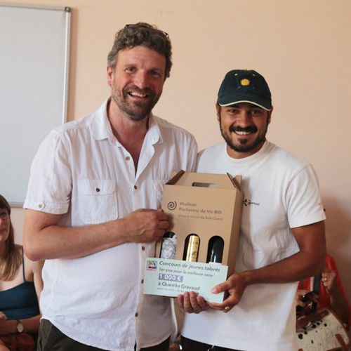 Quentin Gravaud (d), Lauréat du concours 2025, reçoit son prix de Frédéric Ré, Président de la Comcom Adour Madiran